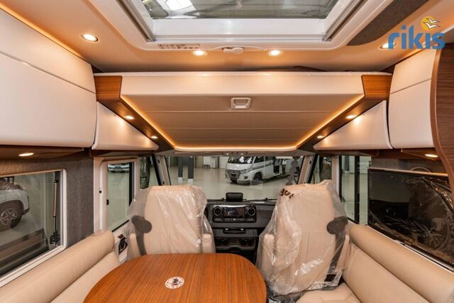 - Super-Paket Mercedes (Halbautomatische Klimaanlage Tempmatik, Tempomat, Ladebooster, Vorderachse mit erhöhter Traglast, Lederlenkrad mit Option Multifunktionstasten (bei Schaltgetriebe inkl. Leder-Schalthebel), Kombiinstrument mit Farbdisplay, Regensensor, Elektrische Feststellbremse, Fahrerhauskomfortsitze mit Neigungs- und Höhenverstellung (vorn / hinten), Kurbel-Heckstützen zur Wankstabilisierung im Stand, MBUX 10,2" Multimedia inkl. Navigation und DAB+, Verkehrszeichenassistent, Busspiegel "Carthago best view" mit Einstiegsbeleuchtung, elektrisch verstell- und beheizbar, XL-Aufbautür "premium two 2.0" (Breite 63 cm) mit Doppelverriegelung, Fenster- und Insektenschutzrollo, Zentralverriegelung Fahrerhaustüren und Aufbautür, mit Funktion "coming home", Rollergaragen-Upgrade mit Nadelfilz, Gepäcknetzen, Befestigungssystem, SOG-Toilettenentlüftung über Dachkamin, Truma DuoControl CS, Design-Barschrank mit Gläserhalter und Glas-Set über Küche, USB-Steckdose im Dachstauschrank über Heckbett, Vorbereitung Solaranlage, Vorbereitung Sat-Anlage, Vorbereitung Rückfahrkamera (Einzellinse), Rückfahrkamerasystem mit Einzellinse, inkl. 7" Farbmonitor seitlich im Armaturenbrett)